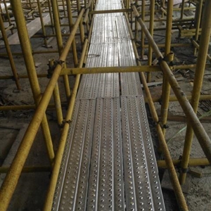 規(guī)格相同的腳手板,木跳板的重量是鋼制腳手板的1.5-2倍重量,而且雨天木板吸水后更笨重,且極端不防滑。工人搭架施工時,木板須2人抬運(yùn),而我公司生產(chǎn)的鋼跳板一人可拿2-4片,極大的提高了工作效率,高強(qiáng)度性使得腳手架管的數(shù)量也能減少使用。